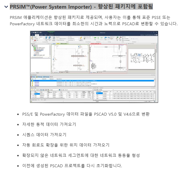 PRSIM™ (Power System Importer)는 PSS/E와 PowerFactory 데이터를 PSCAD로 자동 변환해 대규모 전력 시스템 시뮬레이션을 보다 효율적으로 수행할 수 있도록 설계된 혁신적 도구입니다. 특히 분산전원 연계 시 PSCAD를 통한 과도 해석이 필수적이며, PRSIM™은 이를 지원하는 최적의 솔루션입니다.
